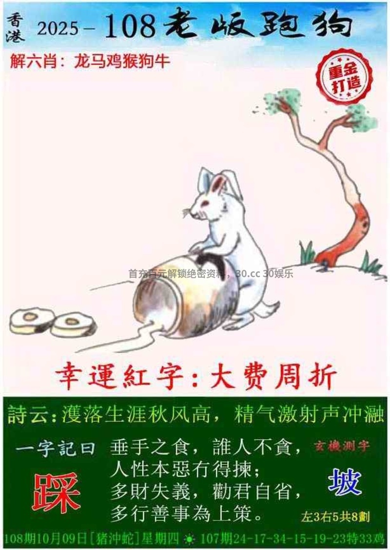 一字玄机解释:左上角木解木肖,虎兔;下部白字解白肖,鼠牛虎鸡狗猪。
